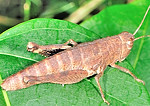 This family is very close related with the Family ACRIDIDAE and sometimes put under ACRIDIDAE as the subfamily. They are medium in size. Usually they hide in grasses, not quite jump or fly. Protection simply relies on   their camouflage colour.