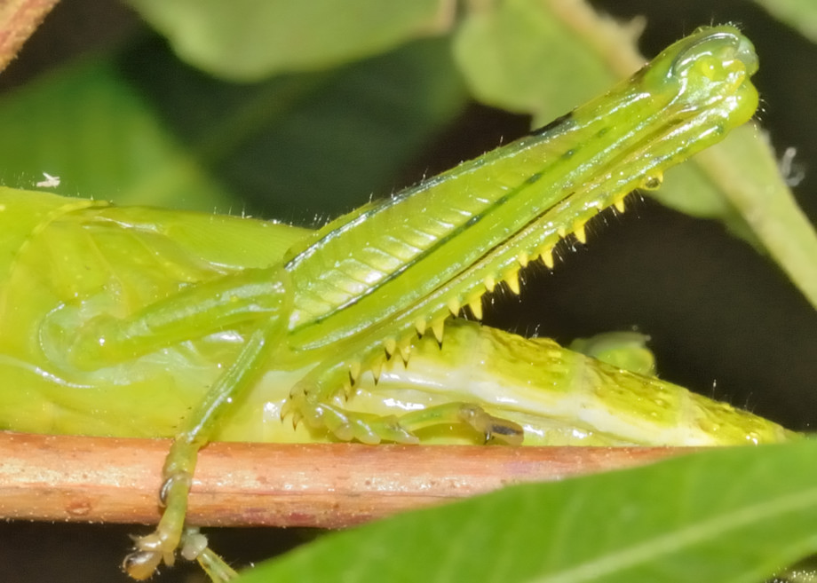 Pygmy Grasshoppers prefer wet habitat. They may be found along watercourses, sit on mud and amongst stones along creeks. Some of them were found on rainforest floor. They feed on algae and vegetation.