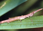 Most members in this family are wingless. They are usually very elongated and narrow. They are well camouflaged and hide in the plants.