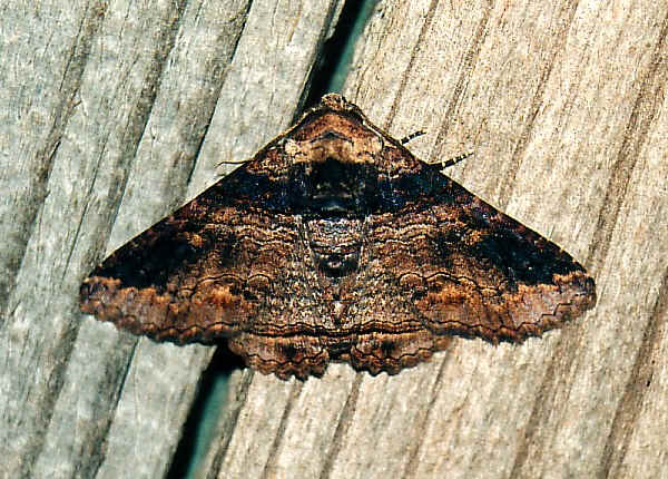 - The moth is brown in colour, with complex pattern of lines and patches. The moth is attracted to window light. We